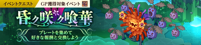 | 【開催期間】 2025年10月22日(水)メンテナンス前まで ウィステラの宿屋でイベントクエスト「昏ク咲ク喰華」を開催中! たくさんチャレンジしてチョコットプレート【青】を集めたら |