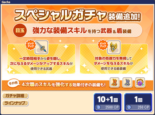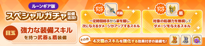 【スペシャルガチャ更新】強力な装備スキルを持つ武器&盾装備が登場!