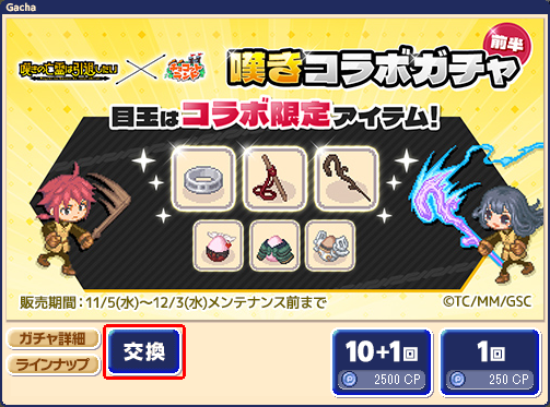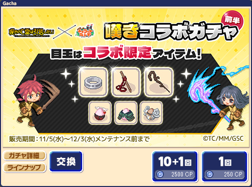 | 「嘆きコラボガチャ前半」をまわすと 「嘆きガチャコイン」を入手できます。