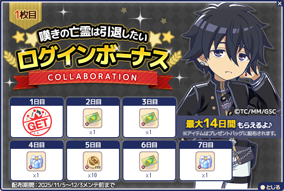 2025年11月 5日 18:28 コラボ期間限定ログインボーナスの配布アイテム数を一部修正