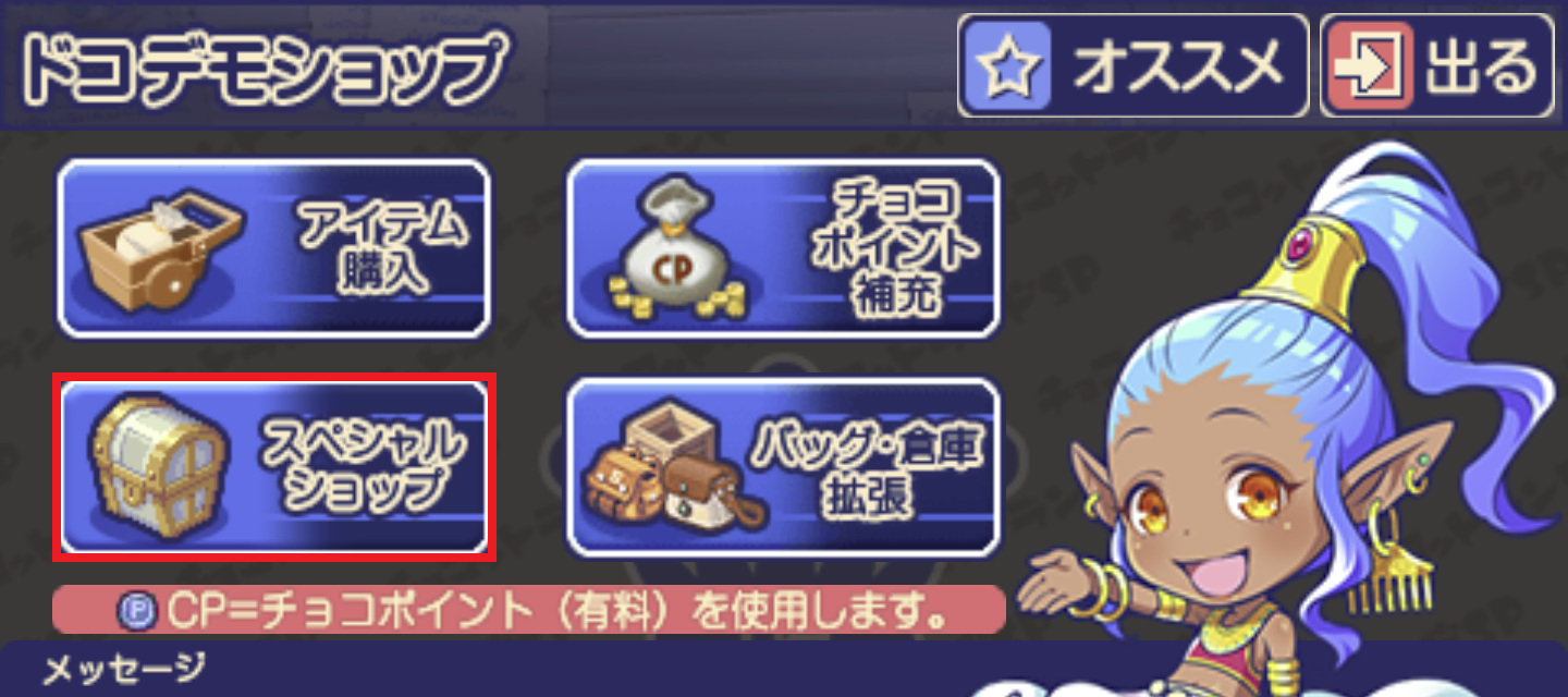 メニューバー>ショップ>アイテム>スペシャルショップ から確認できるよ★