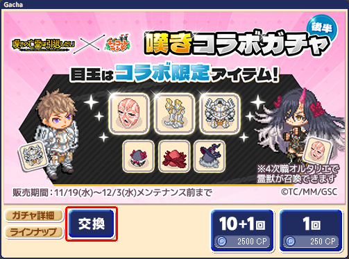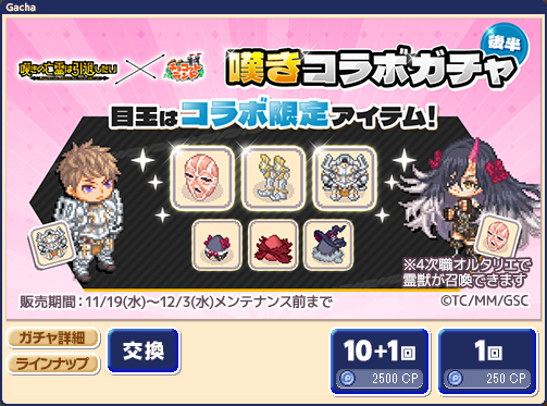 2025年12月 2日 コラボガチャ景品交換所の一部アイテム名の不備を修正