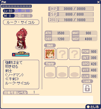 ×1 1 使用する召喚ペットのペットスキル