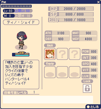 「嘆きの亡霊」のペットのみLUK+3する。