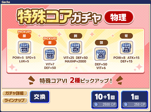 特殊コアガチャ【物理】のラインナップ更新にあわせて、中身が変わります。