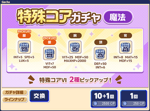 特殊コアガチャ【魔法】のラインナップ更新にあわせて、中身が変わります。