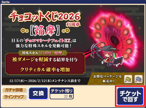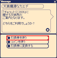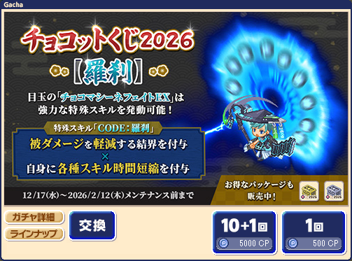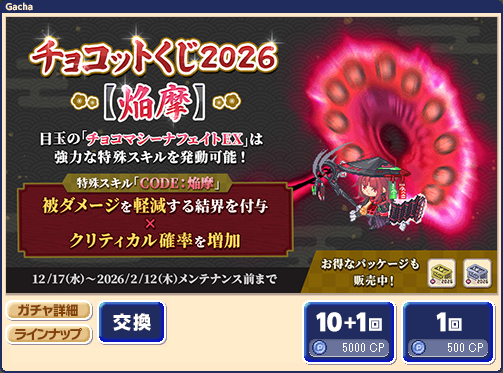 | 【販売・交換期間】 2026年2月12日(木)メンテナンス前まで 年末年始恒例! チョコットくじ2026 |