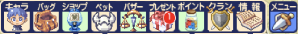 | アイテムは全て、 プレゼントバッグ に配布されるよ♪ メニューバー>プレゼント で 忘れずに受け取ろう!