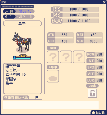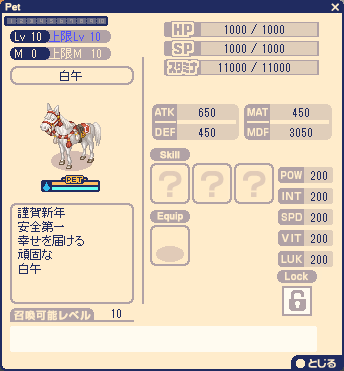 | 1~150の範囲でランダムになります。 ※上記レアペットはLv.1で、マスター合成可能です。 | |||