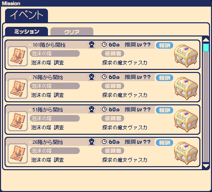 | ■「泡沫の塔」調査の仕様に関する改修 ・各階層のポータルから「帰還の希石」を所持していなくても、拠点への帰還が可能になりました。 ※「帰還の希石」は塔内で入手できなくなります。 ・下記条件①②を満たせば、201/301/401階層からの調査の再開が可能になりました。 ①2026年4月8日(水)メンテナンス以降に 200/300/400階層を突破し、ポータルから拠点へ帰還する。 ②①以降、拠点の「!」から「進入経路を開放する」を選択し、 必要なアイテムをヴァスカに渡す。 ※200/300/400階の順で開放できます。 ■獲得できる報酬の調整 ・階層内のモンスターを全て倒した際に出現する宝箱から以下の効果を削除しました。 - 塔ゲージの減少 - ミミックの出現 ・上記の変更に伴い、宝箱破壊時に出現するアイテムの調整を行いました。 ・21階層以上にて階層内のモンスターを全て倒した場合、 稀に豪華な宝箱が出現するようになりました。 豪華な宝箱は階層が高いほど、出現しやすくなります。 ・「泡沫調査書Ⅰ」の入手条件を変更しました。 開始した階層から合計10階層以上を突破しポータルから拠点へ帰還すると、 突破した階層数に応じて「泡沫調査書Ⅰ」がプレゼントバッグに配布されます。 ※110階層以上からの帰還が必須ではなくなりました。 ※突破した階層数10ごとに「泡沫調査書Ⅰ」の獲得数が増加します。 ■アイテムに関する追加・調整 ・「泡沫の宝箱Ⅰ」から出現するアイテムに各種「弐の石板」を追加しました。 ・「泡沫の宝箱Ⅱ」から出現するアイテムに各種「弐の石板」「参の石板」を追加しました。 ・景品交換所にアイテムを追加しました。 |